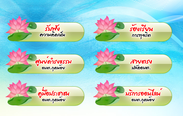 องค์การบริหารส่วนตำบลกุดน้อย ใช้คุกกี้เพื่อเพิ่มประสิทธิภาพ และให้ท่านได้รับประสบการณ์ที่ดียิ่งขึ้นในการใช้งานเว็บไซต์ เพื่อความสะดวกในการเข้าใช้งานเว็บไซต์ ท่านสามารถยินยอมการใช้คุกกี้ โดยคลิก "ยอมรับการใช้คุกกี้"