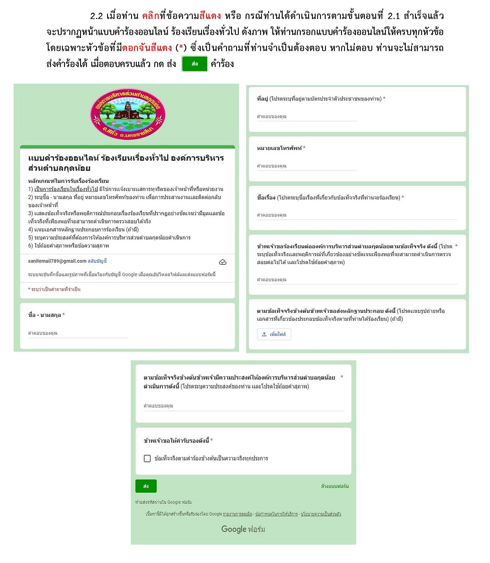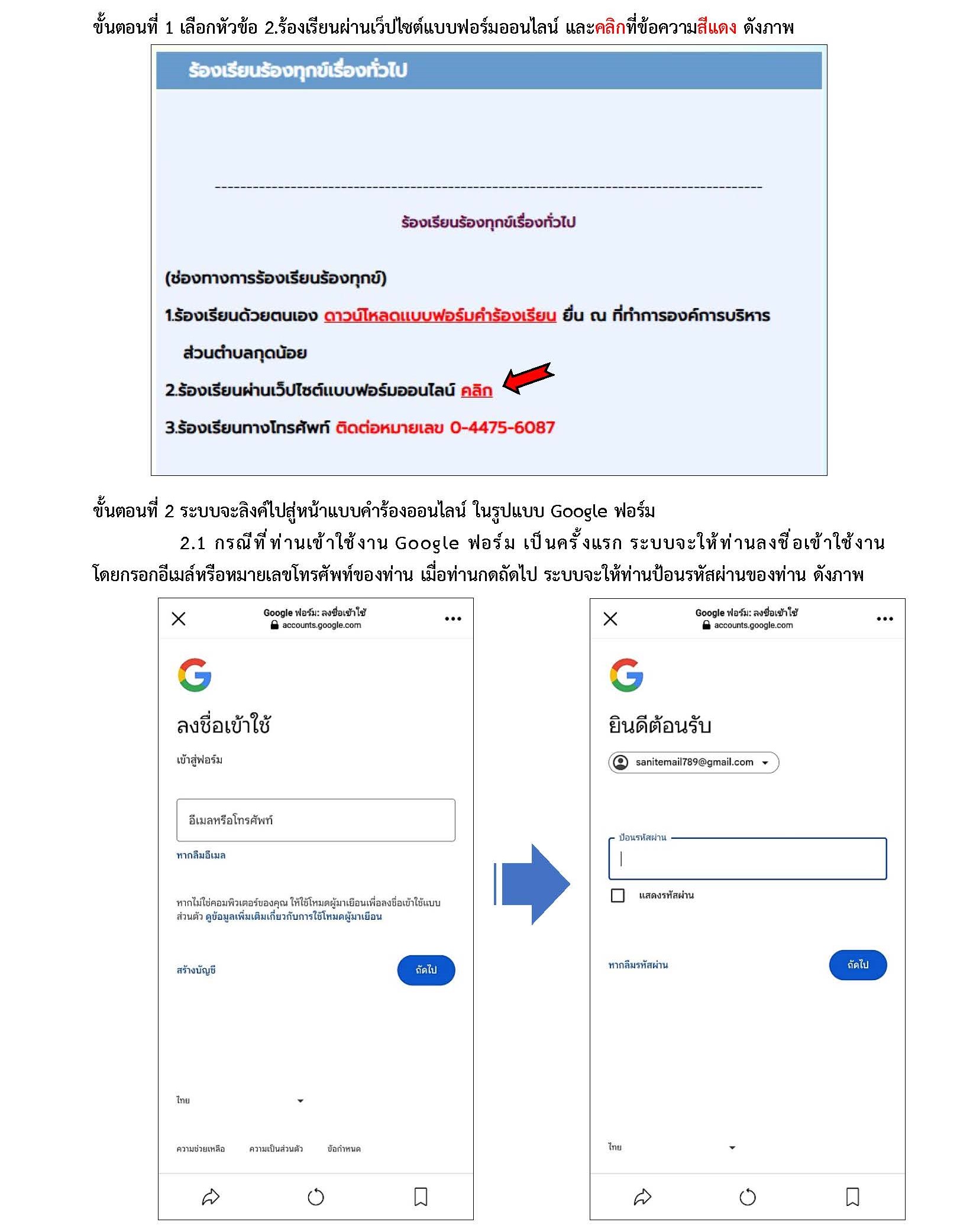 2.ร้องเรียนผ่านเว็ปไซต์เเบบฟอร์มออนไลน์ คลิก