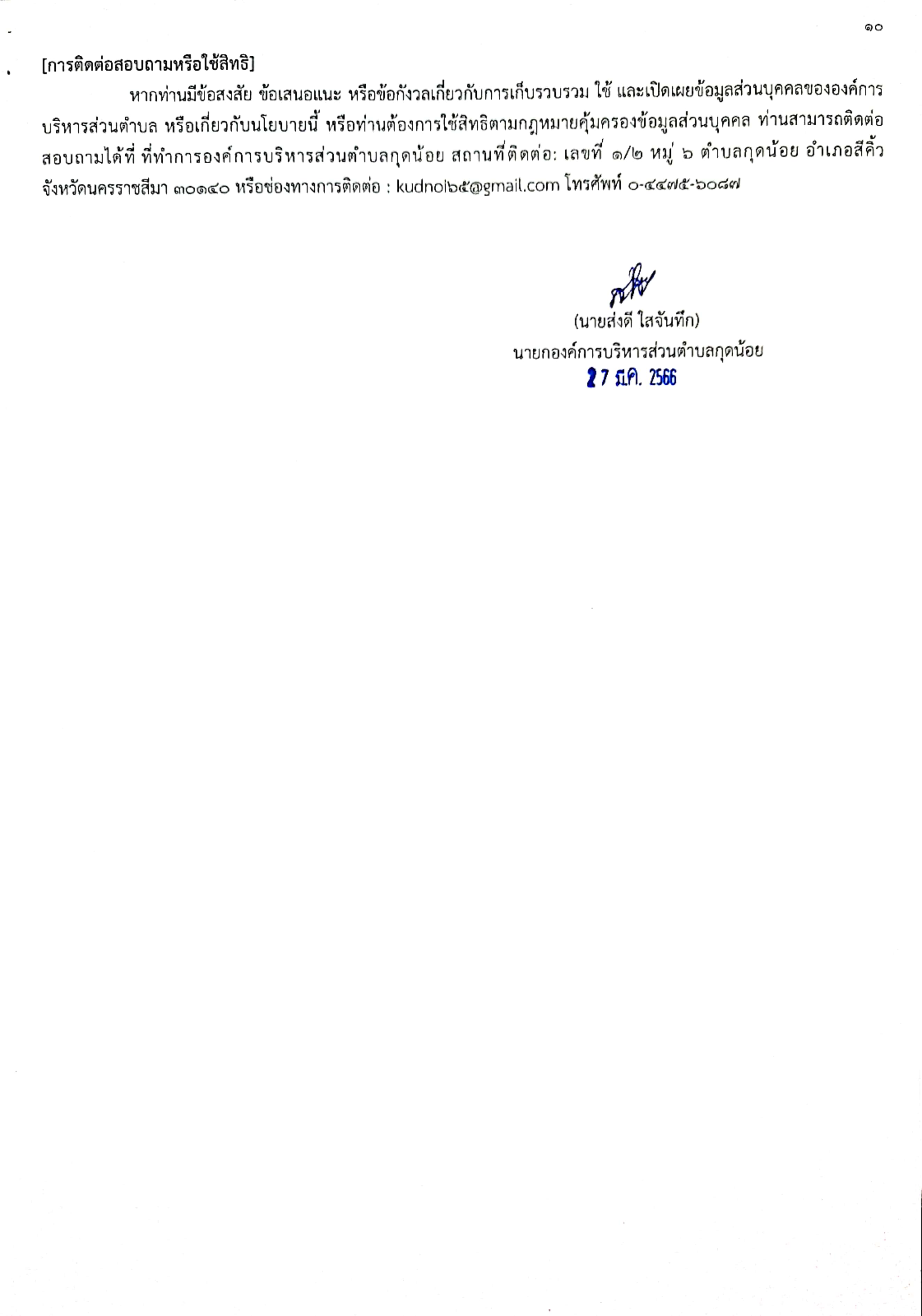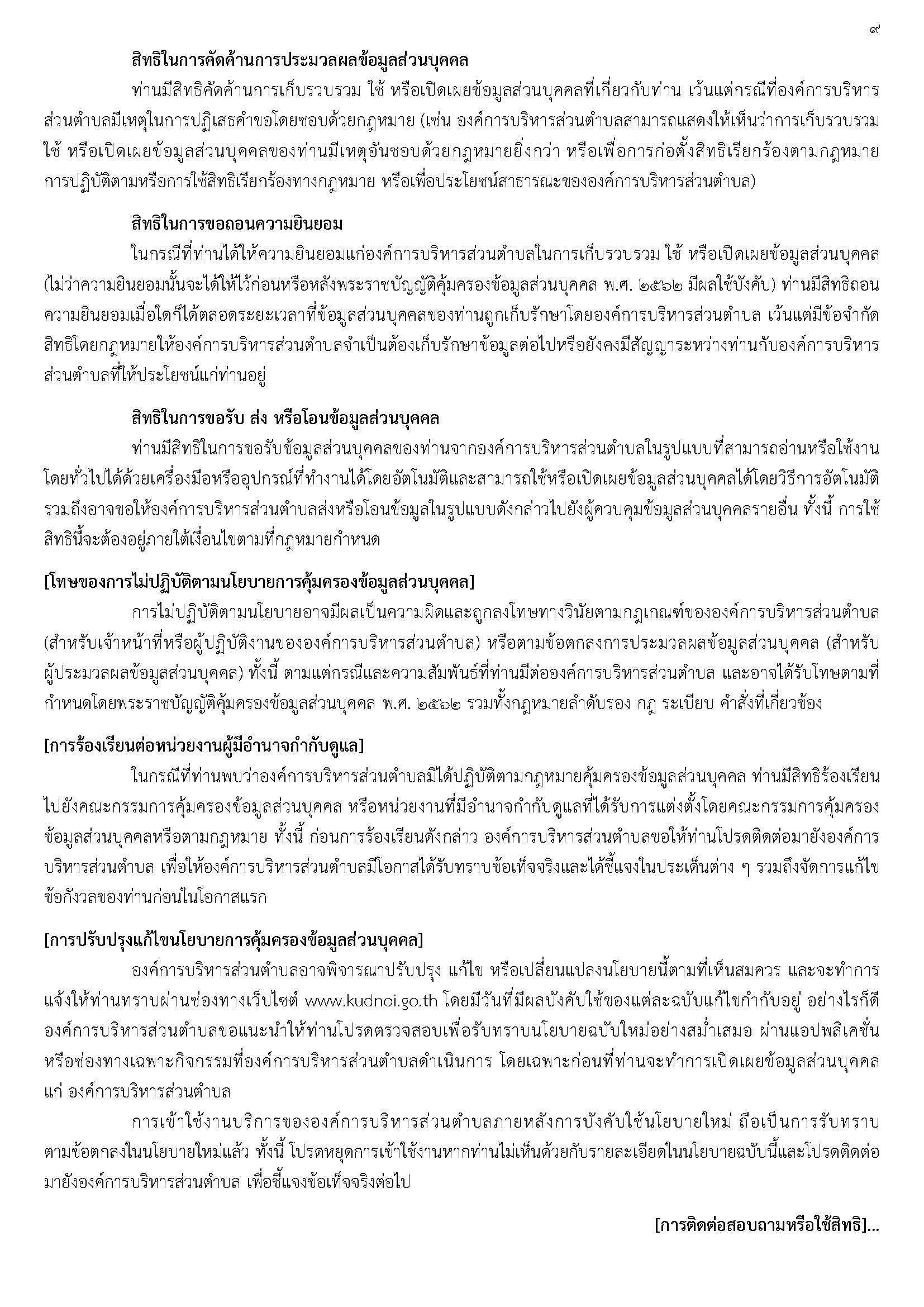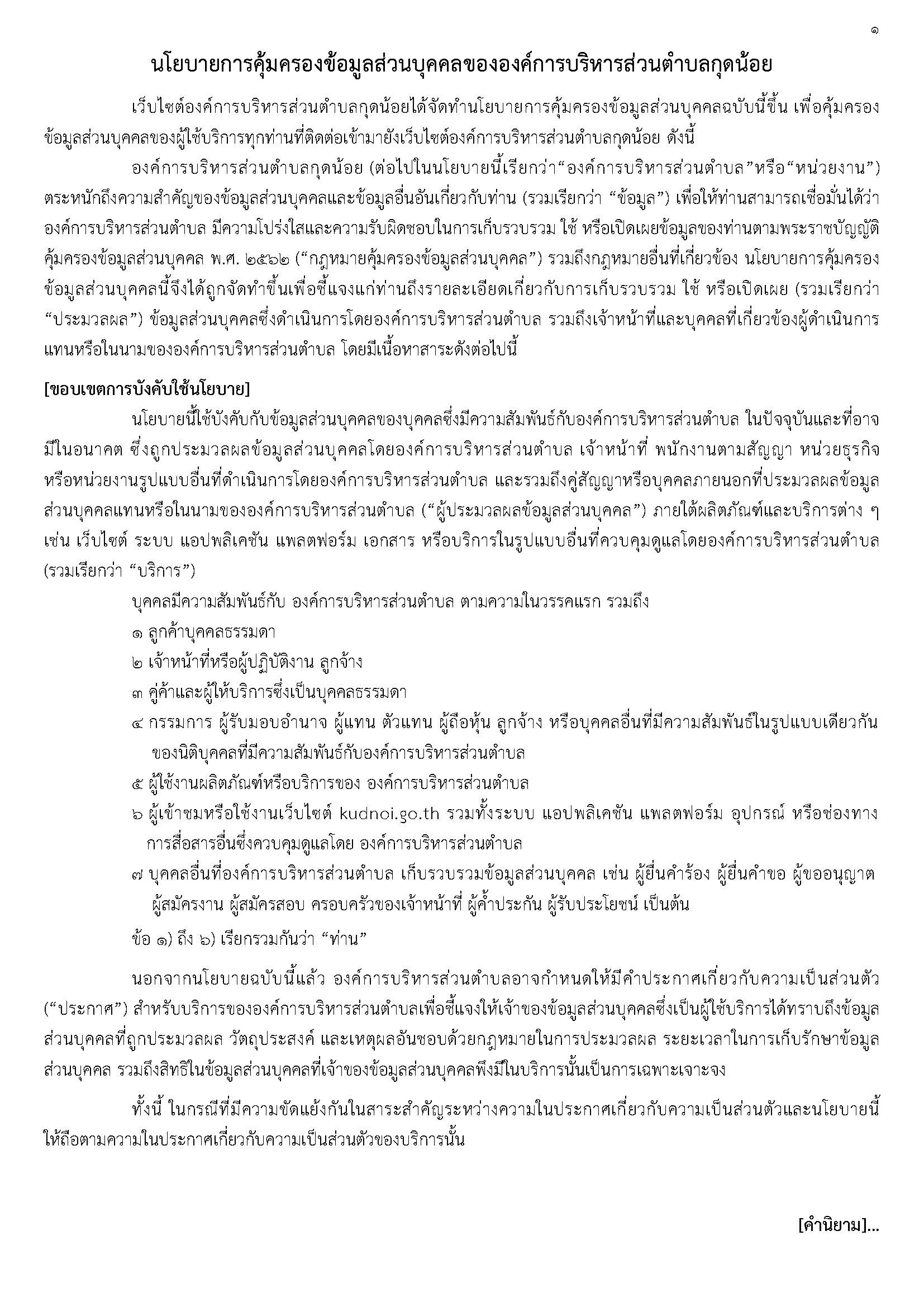 นโยบายการคุ้มครองข้อมูลส่วนบุคคลขององค์การบริหารส่วนตำบลกุดน้อย ดาวน์โหลด